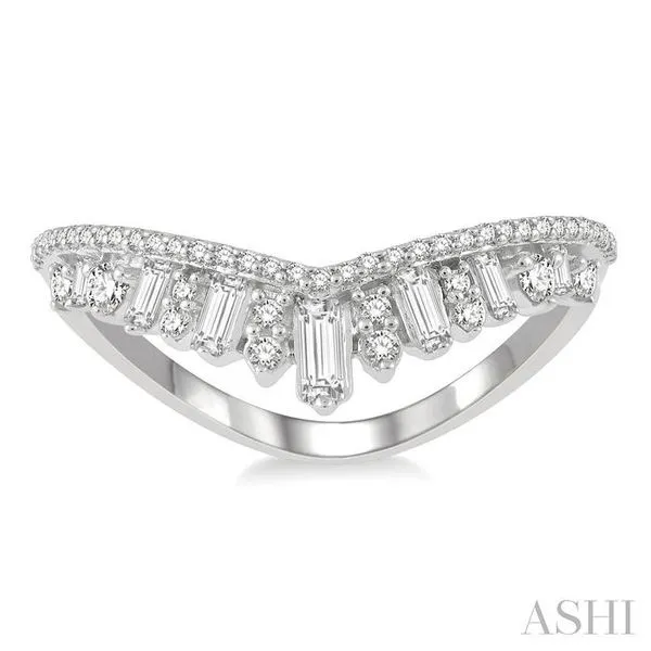 1/2 Ctw Chevron Drop Down Baguette and Round Cut Diamond Fashion Ring in 14K White Gold Image 2 Adler's Diamonds Saint Louis, MO
