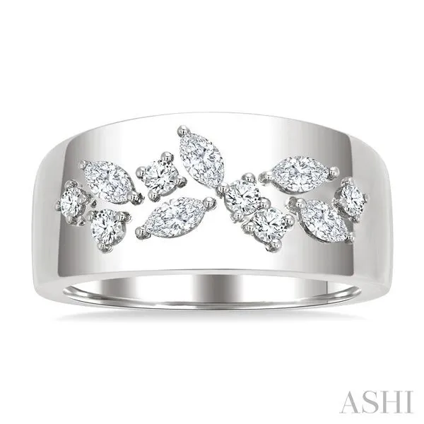 1/2 Ctw Marquise and Round Cut Diamond Fashion Wide Band in 14K White Gold Image 2 Adler's Diamonds Saint Louis, MO