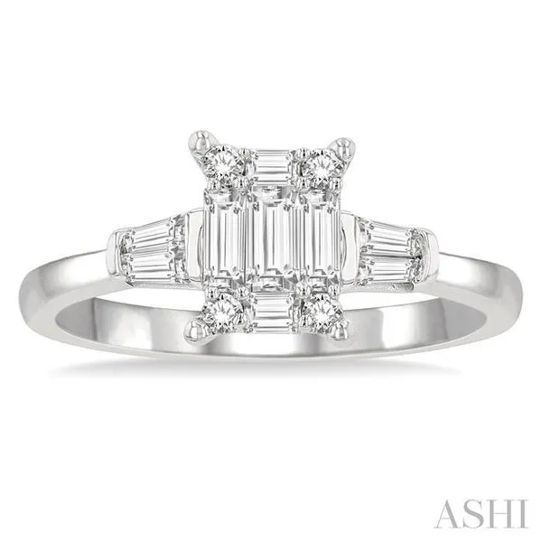 1/2 Ctw Modern Rectangular Head Baguette and Round Cut Diamond Ladies Ring in 14K White Gold Image 2 Adler's Diamonds Saint Louis, MO