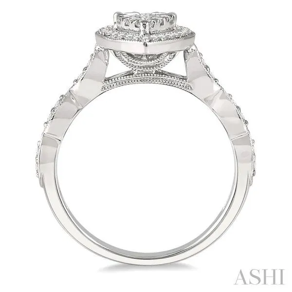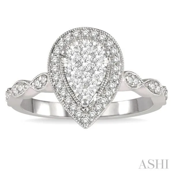 1/2 Ctw Pear Shape Mount Marquise Shank Lovebright Round Cut Diamond Ring in 14K White Gold