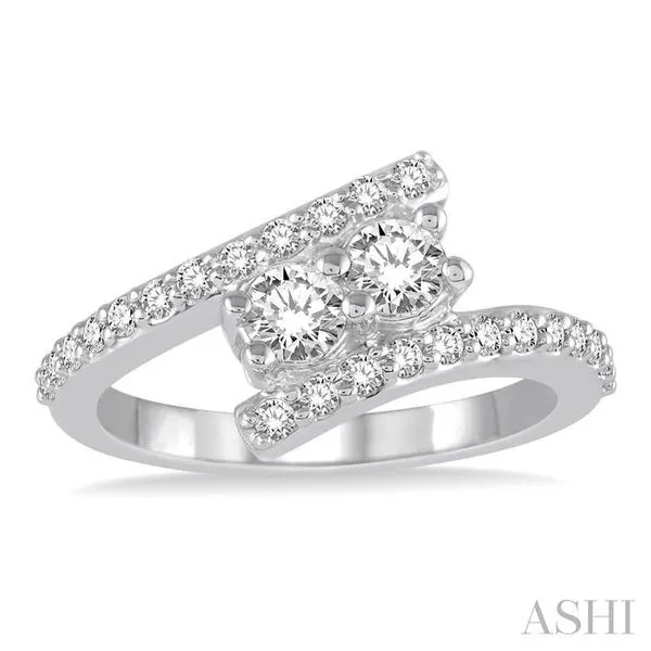 1/2 Ctw Twin Center Stone Parallel Split Shank Round Cut Diamond 2Stone Ring in 14K White Gold Image 2 Adler's Diamonds Saint Louis, MO