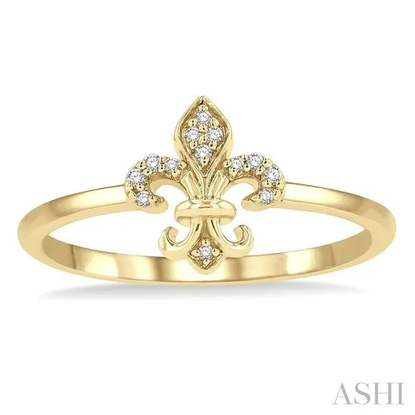 1/20 Ctw Fleur De Lis Round Cut Diamond Petite Fashion Ring in 10K Yellow Gold Image 2 Adler's Diamonds Saint Louis, MO