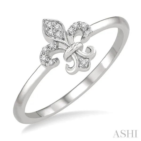 1/20 Ctw Fleur De Lis Single Cut Diamond Petite Fashion Ring in 10K White Gold Image 2 Adler's Diamonds Saint Louis, MO