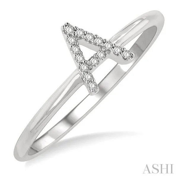 1/20 Ctw Initial 'A' Round Cut Diamond Fashion Ring in 10K White Gold Image 2 Adler's Diamonds Saint Louis, MO