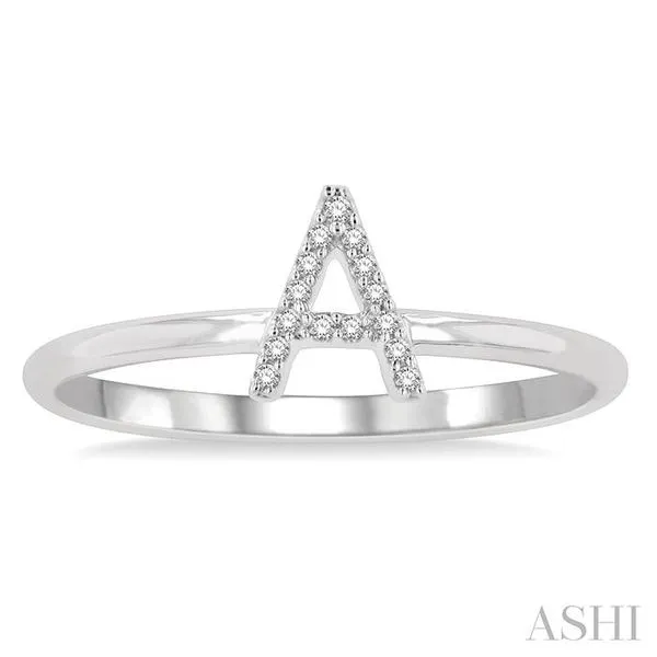 1/20 Ctw Initial 'A' Round Cut Diamond Fashion Ring in 10K White Gold