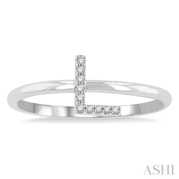 1/20 Ctw Initial 'L' Round Cut Diamond Fashion Ring in 10K White Gold