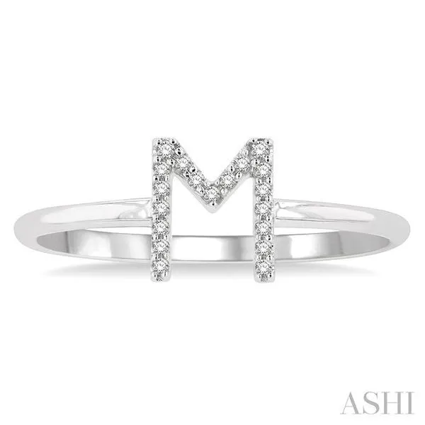1/20 Ctw Initial 'M' Round Cut Diamond Fashion Ring in 10K White Gold Image 4 Adler's Diamonds Saint Louis, MO