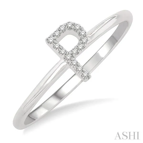 1/20 Ctw Initial 'P' Round Cut Diamond Fashion Ring in 10K White Gold Image 2 Adler's Diamonds Saint Louis, MO