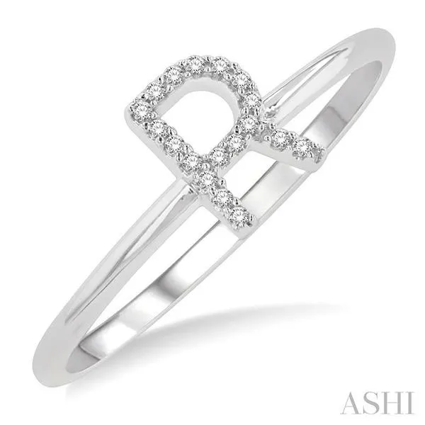 1/20 Ctw Initial 'R' Round Cut Diamond Fashion Ring in 10K White Gold Image 2 Adler's Diamonds Saint Louis, MO