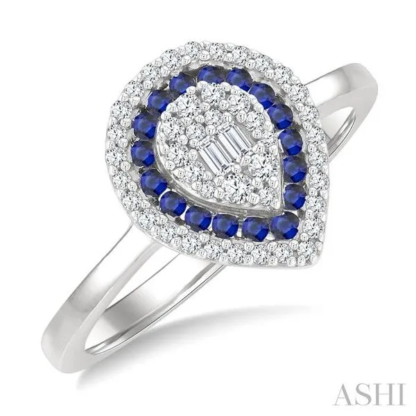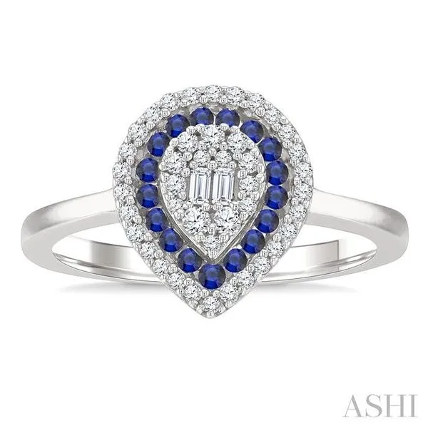 1.25 & 1.45 MM Round Cut Sapphire and 1/4 Ctw Baguette and Round Cut Diamond Precious Ring in 14K White Gold Image 2 Adler's Diamonds Saint Louis, MO