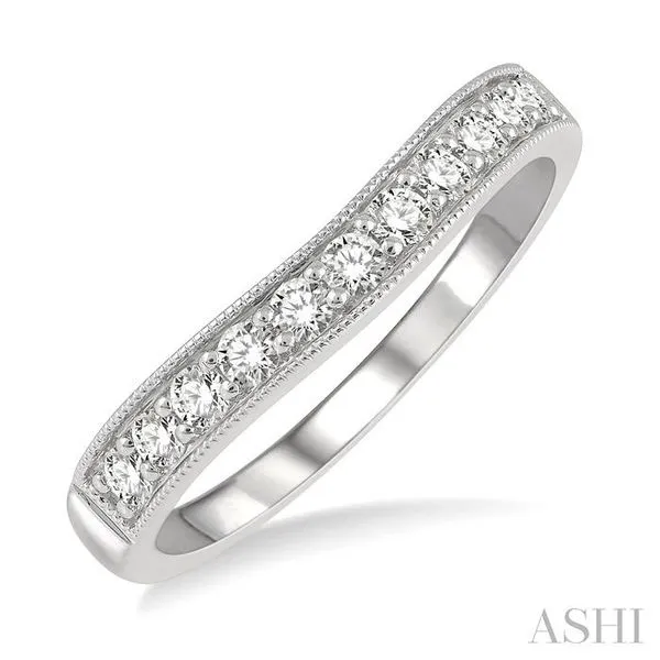 1/3 Ctw Curved Center Milgrain Border Round Cut Diamond Wedding Band in 14K White Gold Image 3 Adler's Diamonds Saint Louis, MO