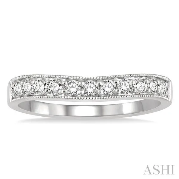 1/3 Ctw Curved Center Milgrain Border Round Cut Diamond Wedding Band in 14K White Gold
