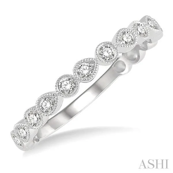 1/3 Ctw Lattice Circular and Pear Shape Mount Round Cut Diamond Stackable Band in 14K White Gold Image 2 Adler's Diamonds Saint Louis, MO