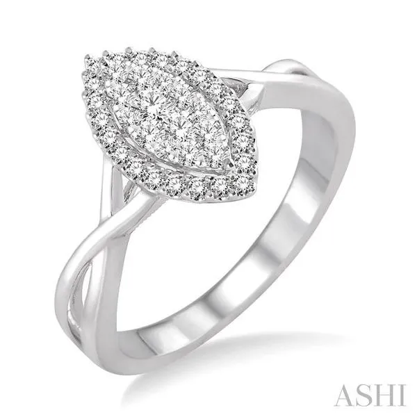 1/3 Ctw Marquise Shape Round Cut Diamond Lovebright Ring in 14K White Gold Image 3 Adler's Diamonds Saint Louis, MO