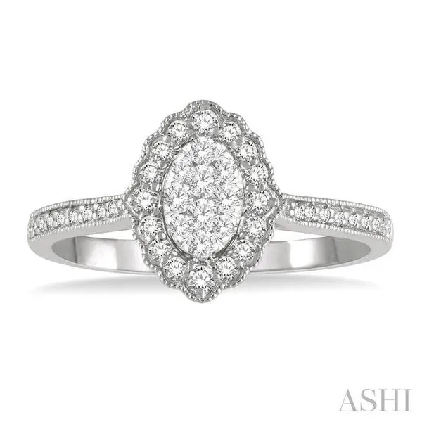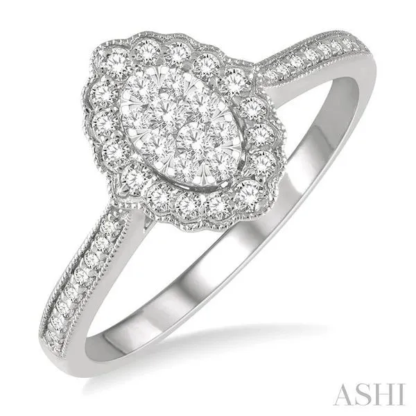 1/3 Ctw Oval Lattice Lovebright Round Cut Diamond Ladies Ring in 14K White Gold Image 4 Adler's Diamonds Saint Louis, MO