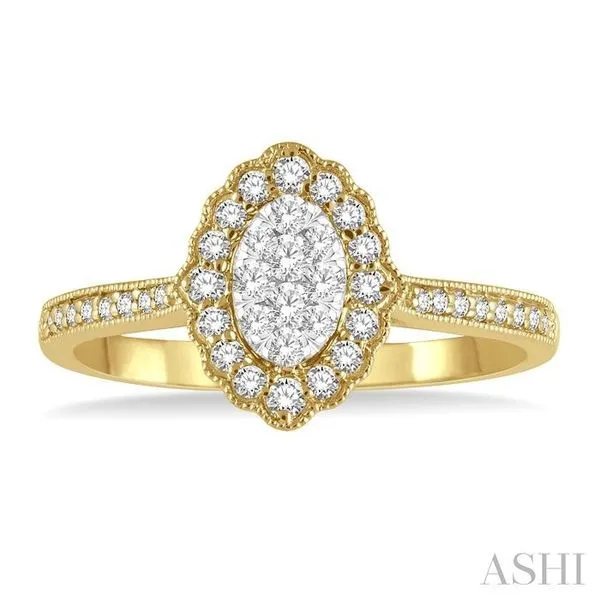 1/3 Ctw Oval Lattice Lovebright Round Cut Diamond Ladies Ring in 14K Yellow and White Gold Image 3 Adler's Diamonds Saint Louis, MO