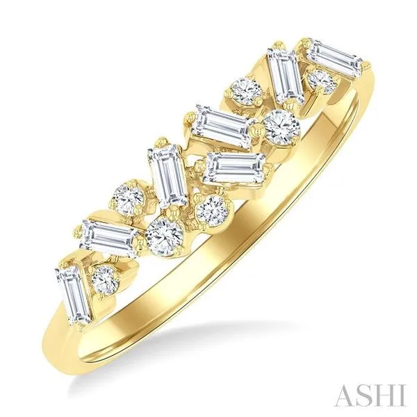 1/3 Ctw Scatter Baguette and Round Cut Diamond Stackable Fashion Band in 10K Yellow Gold Image 2 Adler's Diamonds Saint Louis, MO