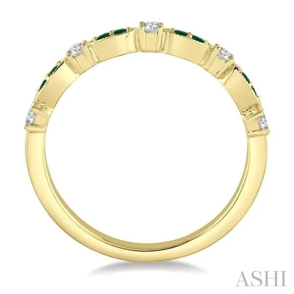 1.35 MM Emerald and 1/6 Ctw Round Cut Diamond Precious Stone Wedding Band in 14K Yellow Gold Image 3 Adler's Diamonds Saint Louis, MO