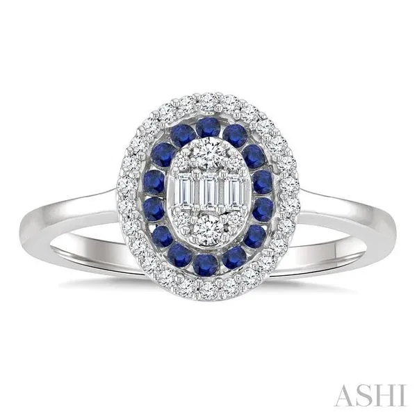 1.35 MM Round Cut Sapphire and 1/4 Ctw Baguette and Round Cut Diamond Precious Ring in 14K White Gold Adler's Diamonds Saint Louis, MO