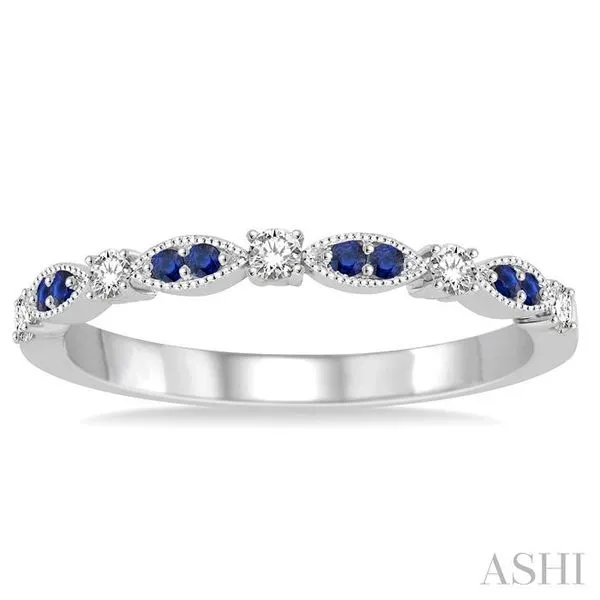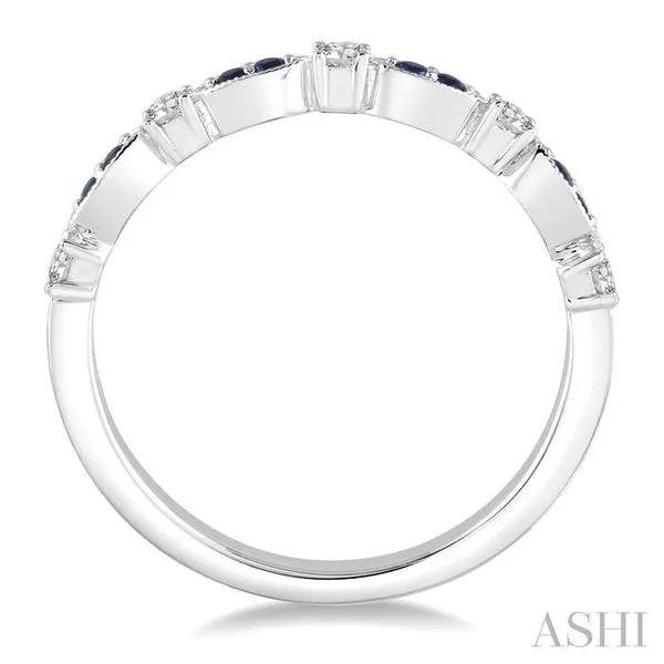 1.35 MM Sapphire and 1/6 Ctw Round Cut Diamond Precious Stone Wedding Band in 14K White Gold Image 3 Adler's Diamonds Saint Louis, MO