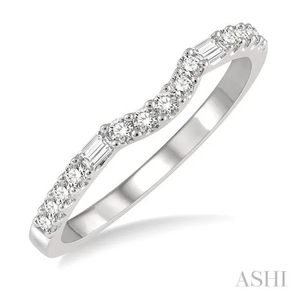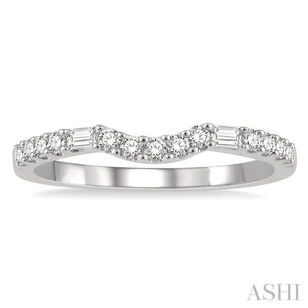 1/4 Ctw Arched Center Baguette and Round Cut Diamond Wedding Band in 14K White Gold Image 3 Adler's Diamonds Saint Louis, MO
