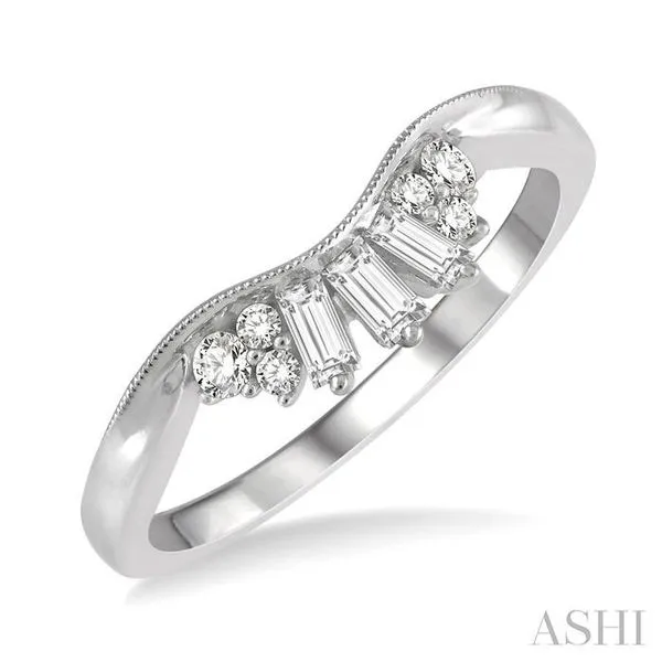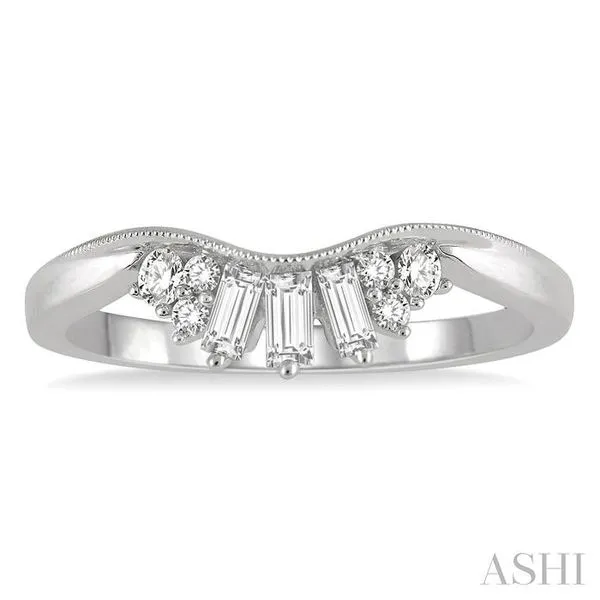 1/4 Ctw Curved Center Baguette and Round Cut Diamond Wedding Band in 14K White Gold Image 2 Adler's Diamonds Saint Louis, MO
