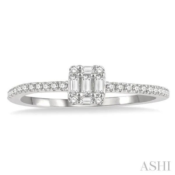 1/4 Ctw Cushion Shape Petite Baguette and Round Cut Diamond Fashion Promise Ring in 14K White Gold Image 4 Adler's Diamonds Saint Louis, MO