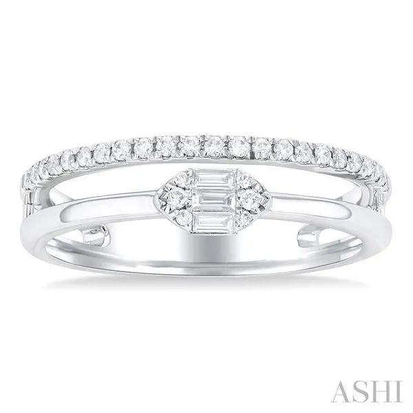 1/4 Ctw Marquise shape Twin Band Baguette and Round Cut Diamond Fusion Fashion Ring in 10K White Gold Image 2 Adler's Diamonds Saint Louis, MO