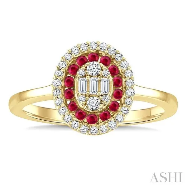 1/4 Ctw Oval Shape 1.35MM Ruby, Baguette and Round Cut Diamond Precious Fusion Fashion Ring in 14K Yellow Gold Image 2 Adler's Diamonds Saint Louis, MO