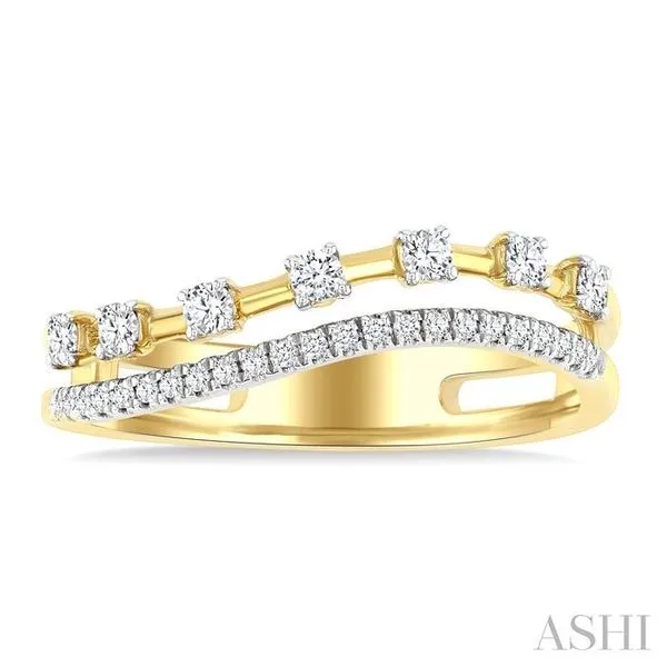 3. 1/4 Ctw Split Curved Twin Row Round Cut Diamond Fashion Band in 14K Yellow Gold