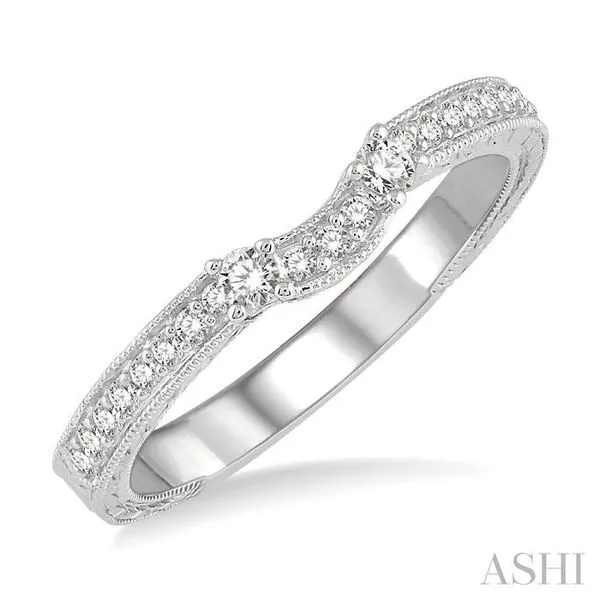 1/5 Ctw Curved Center Foliage Engraved Round Cut Diamond Wedding Band in 14K White Gold Image 2 Adler's Diamonds Saint Louis, MO