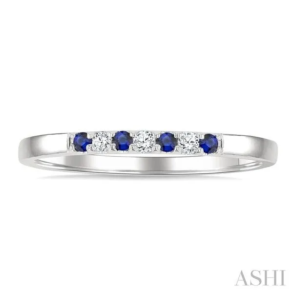 1.55 MM Sapphire and 1/20 Ctw Round Cut Diamond Band in 10K White Gold Image 2 Adler's Diamonds Saint Louis, MO