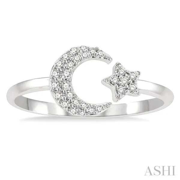 1/6 Ctw Crescent Moon and Star Round Cut Petite Diamond Fashion Ring in 10K White Gold Image 2 Adler's Diamonds Saint Louis, MO