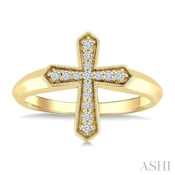 1/6 Ctw Cross Round Cut Diamond Fashion Petite Ring in 10K Yellow Gold Image 3 Adler's Diamonds Saint Louis, MO