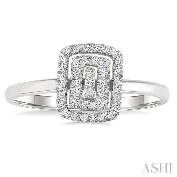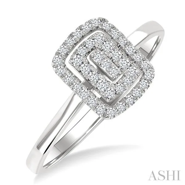1/6 Ctw Double Halo Emerald Shape Petite Round Cut Diamond Fashion Ring in 10K White Gold Image 2 Adler's Diamonds Saint Louis, MO