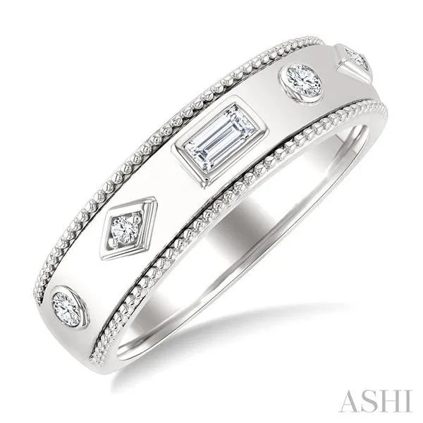 3. 1/6 Ctw Mixed Shape Bezel Set Baguette and Round Cut Diamond Fashion Band in 14K White Gold
