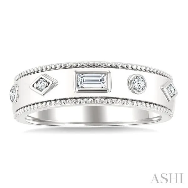 1/6 Ctw Mixed Shape Bezel Set Baguette and Round Cut Diamond Fashion Band in 14K White Gold Image 2 Adler's Diamonds Saint Louis, MO