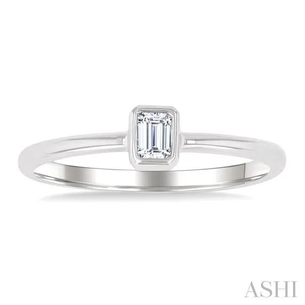 1/6 Ctw Petite Bezel Set Emerald Cut Diamond Fashion Ring in 10K White Gold Image 2 Adler's Diamonds Saint Louis, MO