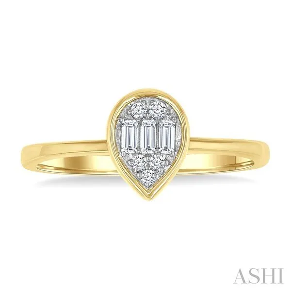 1/6 Ctw Petite Bezel Set Pear Shape Fusion Baguette and Round Cut Diamond Fashion Ring in 10K Yellow Gold Adler's Diamonds Saint Louis, MO