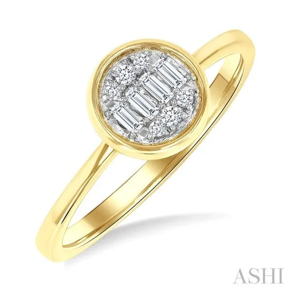 1/6 Ctw Petite Bezel Set Round Shape Fusion Baguette and Round Cut Diamond Fashion Ring in 10K Yellow Gold Image 2 Adler's Diamonds Saint Louis, MO