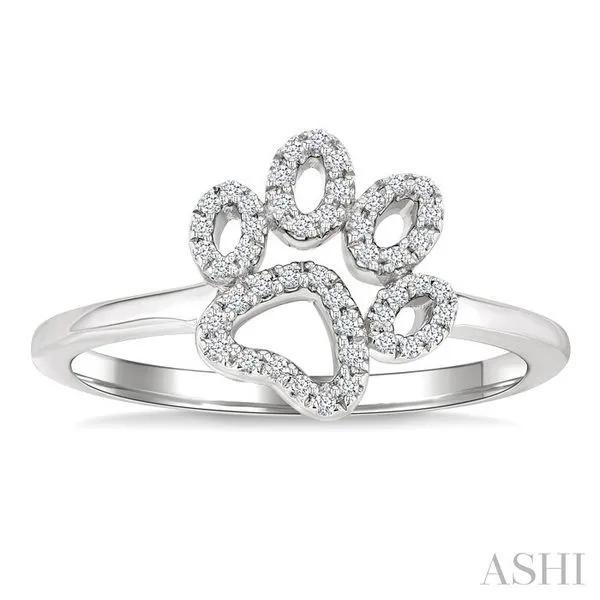 1/6 Ctw Petite Dog Paw Round Cut Diamond Fashion Ring in 10K White Gold