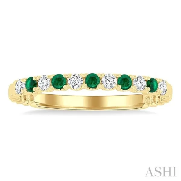 1.75 MM Emerald and 1/6 Ctw Round Cut Diamond Precious Wedding Band in 14K Yellow Gold Image 4 Adler's Diamonds Saint Louis, MO