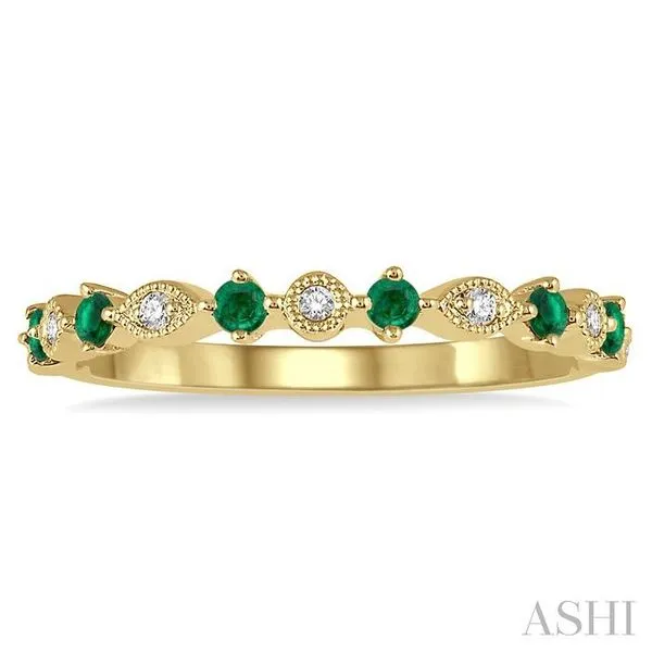 1.8 MM Round Cut Emerald and 1/20 Ctw Round Cut Diamond Precious Half Eternity Wedding Band in 14K Yellow Gold Image 2 Adler's Diamonds Saint Louis, MO