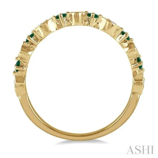 1.8 MM Round Cut Emerald and 1/20 Ctw Round Cut Diamond Precious Half Eternity Wedding Band in 14K Yellow Gold Image 4 Adler's Diamonds Saint Louis, MO