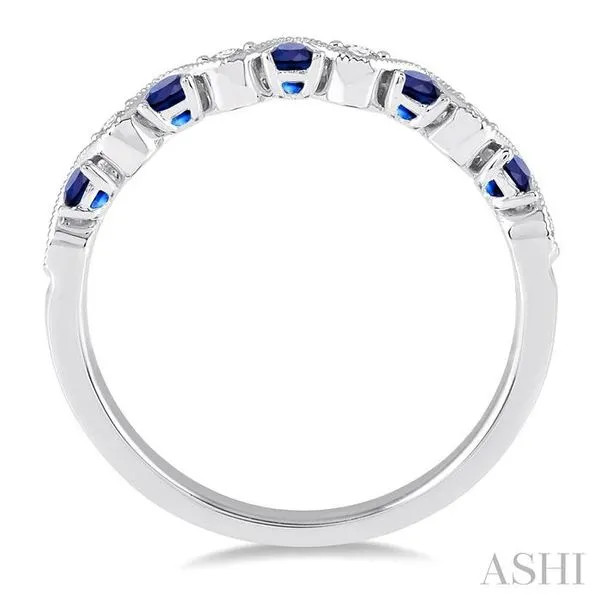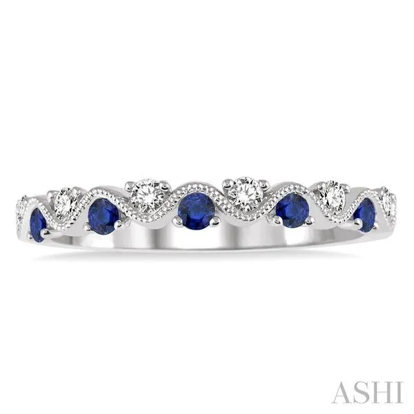 1.8 MM Sapphire and 1/6 Ctw Round Cut Diamond Precious Waves Wedding Band in 14K White Gold Image 2 Adler's Diamonds Saint Louis, MO