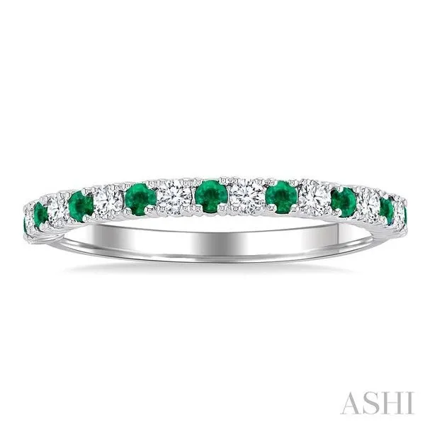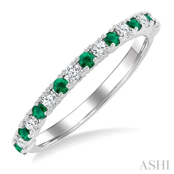 1.80 MM Round Shape Emerald and 1/4 Ctw Round Cut Diamond Precious Stack Band in 10K White Gold Image 2 Adler's Diamonds Saint Louis, MO