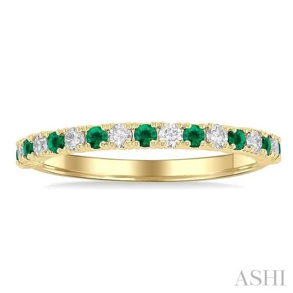 1.80 MM Round Shape Emerald and 1/4 Ctw Round Cut Diamond Precious Stack Band in 10K Yellow Gold Image 2 Adler's Diamonds Saint Louis, MO