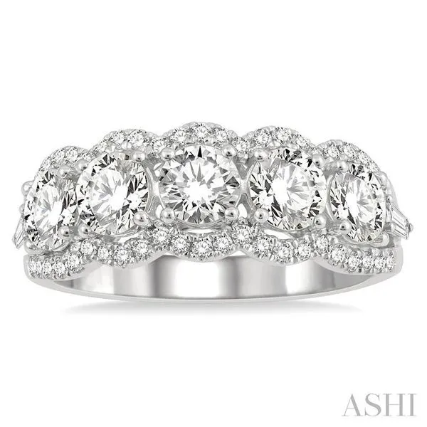 2 Ctw Scalloped Edge Circular Mount 5-Stone Baguette and Round Cut Diamond Fashion Ring in 14K White Gold Image 2 Adler's Diamonds Saint Louis, MO