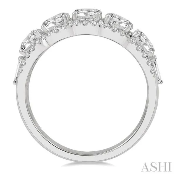 2 Ctw Scalloped Edge Circular Mount 5-Stone Baguette and Round Cut Diamond Fashion Ring in 14K White Gold Image 3 Adler's Diamonds Saint Louis, MO