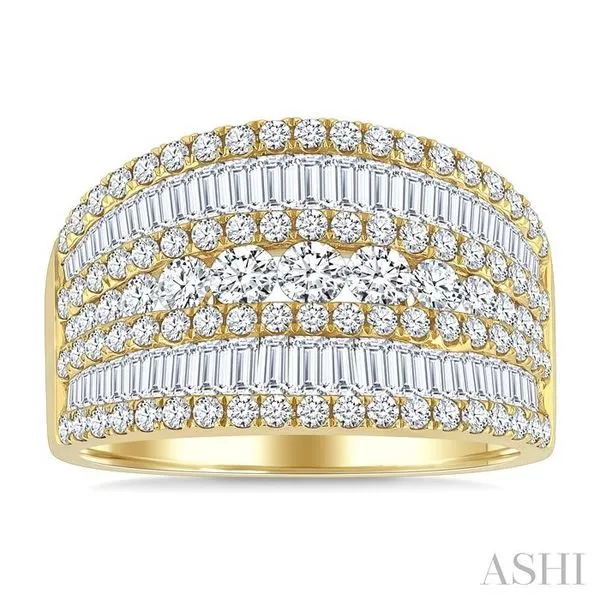 2 Ctw Split Middle Baguette and Round Cut Diamond Fashion Wide Band in 14K Yellow Gold Image 2 Adler's Diamonds Saint Louis, MO